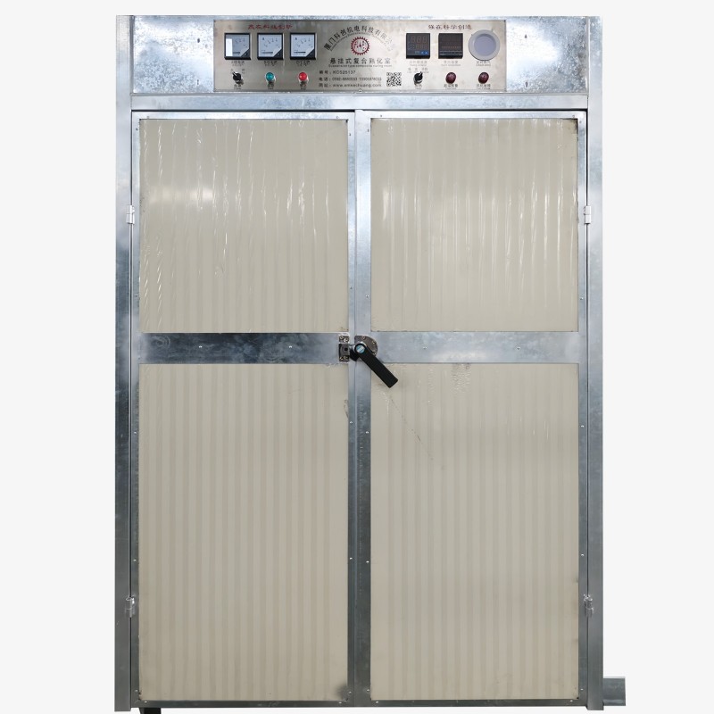 Kabinet Sokongan Kabinet: 50*50 dan 50*100 paip galvanized dikimpal bersama, dengan jarak 480mm, yang menampilkan mod semi-disassembly ERP. Penebat Kabinet: Rock 50mm Rock Wool Color-Coated Steel Sandwich Panels. Kawalan Elektrik: Peralatan elektrik voltan rendah Schneider dengan perlindungan suhu yang lebih tinggi, penutupan masa, ekzos masa, perlindungan kehilangan fasa, dan perlindungan beban. Sistem erp: Delta plc, sensor, bermakna bekalan kuasa bertukar dengan baik, skrin sentuh Delta. Sistem Udara Beredar: Satu kipas centrifugal 550W dengan ekzos ke bawah, ekzos ke atas, dan kembali udara. Sistem pemanasan terletak di bahagian atas kabinet. Sistem Ekzos: Satu kipas ekzos 180W dengan dua pemasa (boleh dikonfigurasikan: masa ekzos dan masa berhenti). Pemanasan: Satu sistem pemanasan elektrik, mod pelbagai tiub (12 baris jumlah), 9kW + 9kW = 18kW, dengan pilihan suhu tinggi dan rendah. Memuatkan bahan dan memunggah: Memuatkan ke belakang, mudah dibuka dan ditutup. Bingkai Pintu: Lembaran Galvanized 2.0. Pintu panel sandwic keluli bersalut warna. Aksesori yang dibekalkan: 1. Bilangan lapisan: Dua lapisan, trek tugas berat berbentuk C, dengan pusat roll filem terendah 650mm di atas tanah. Jarak trek adalah 850mm. Suhu operasi: laras dari 40 ° C hingga 80 ° C, dengan toleransi ± 2 ° C.